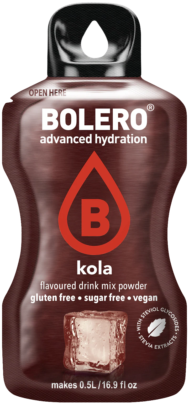 Lekkere cola smaak. De Bolero drink mix en go kan je aan 1500ml water toevoegen. Praktisch voor onderweg of varieer in smaken iedere dag. Voedingswaarde per stick: 2kcal | <0,2g netto koolhydraten | <0,2g eiwitten. ...Meer informatie
