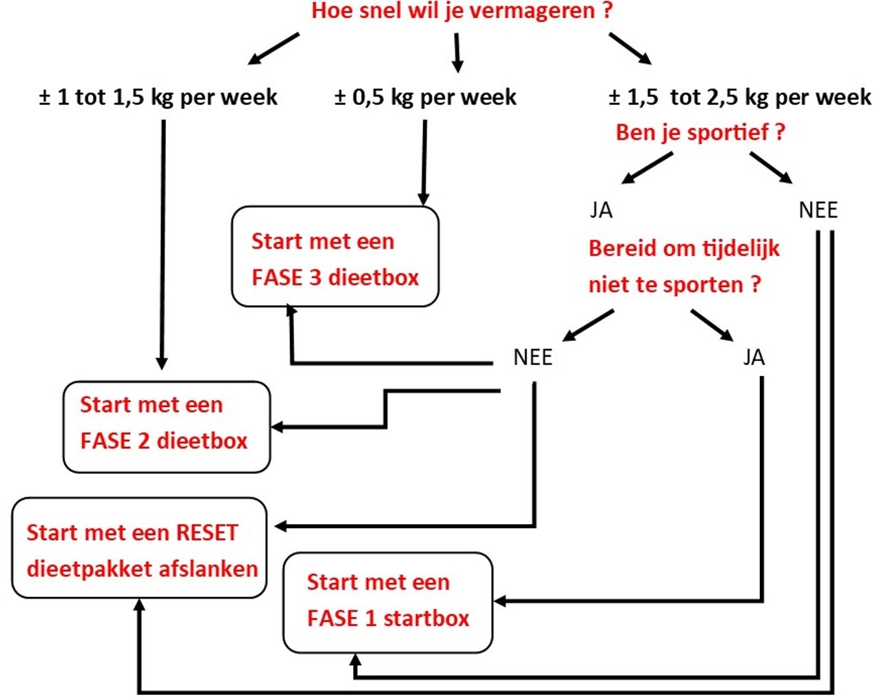 Bepaal met onderstaande boomstructuur jouw ideale dieetbox als startpakket!
