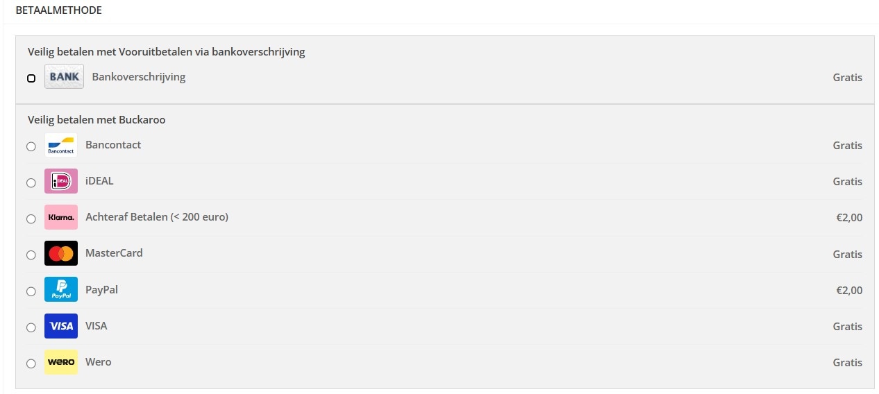 Wij bieden verschillende GRATIS betaalmogelijkheden aan: